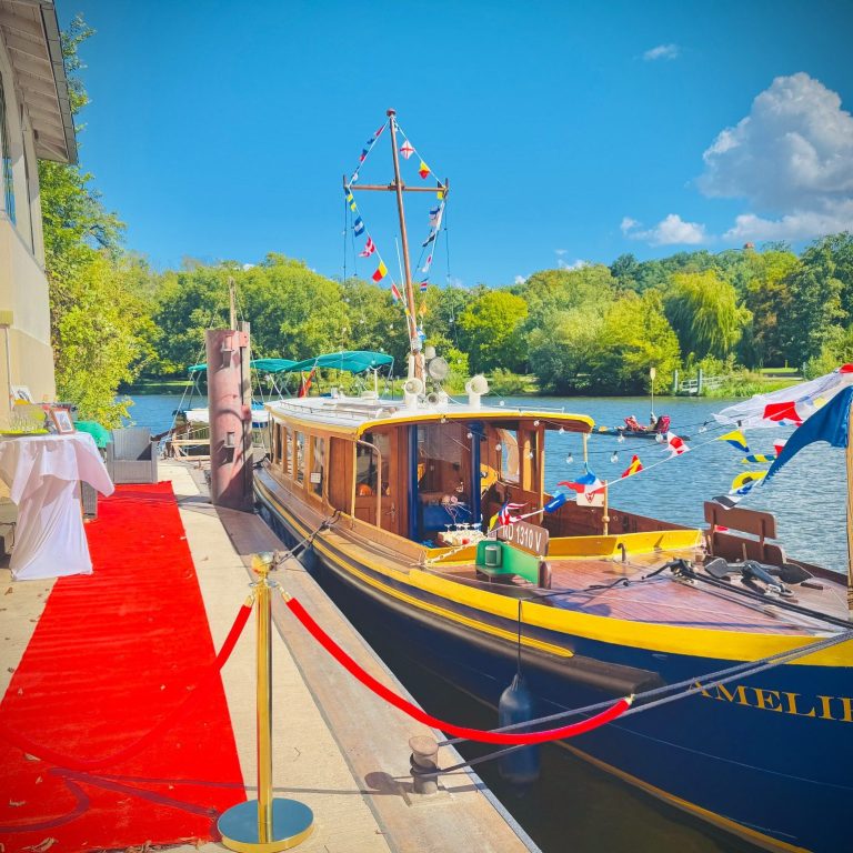 an Bord des Salonbootes Amelie in Halle.Genießen Sie die einzigartige Kulisse des Saaleufers und erleben Sie besondere Momente gemeinsam mit Ihren Freunden. Ein stilvoller Rahmen für Ihre schönsten Anlässe.